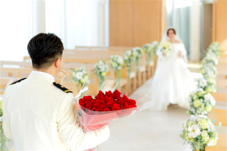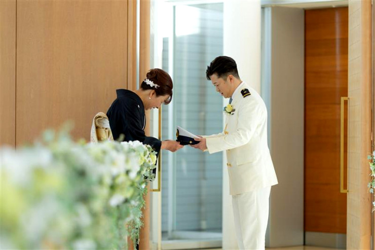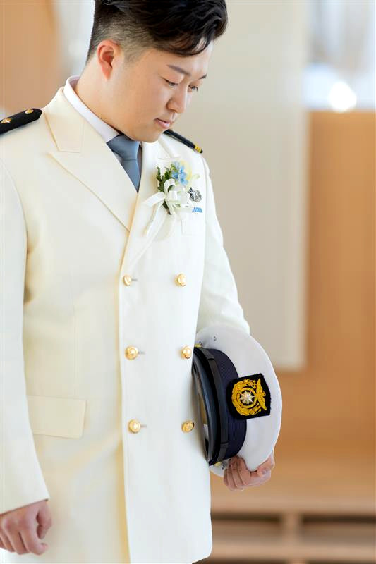 ご結婚式当日、ご新郎様はご自身のご職業である海上保安庁の制服をお持込され、