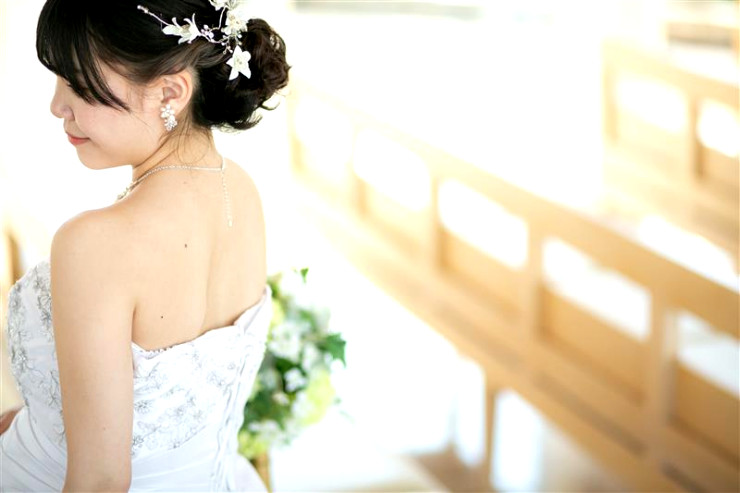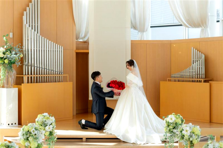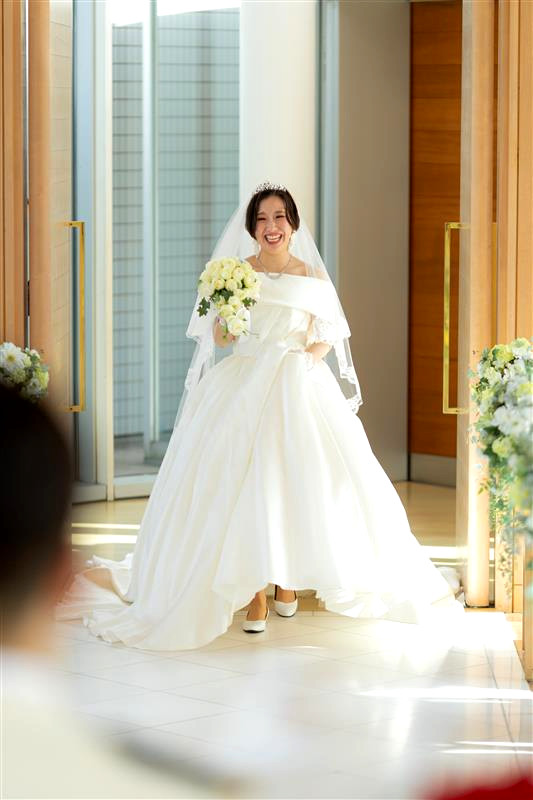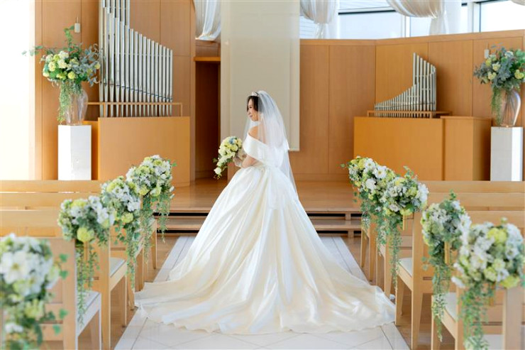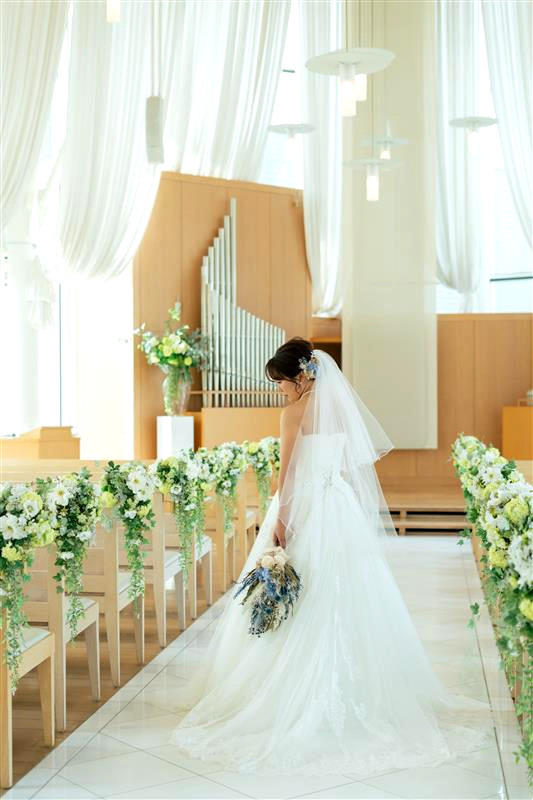 チャペルの雰囲気と、お好みのドレスどちらも残すなら、引きのお写真がオススメです!
