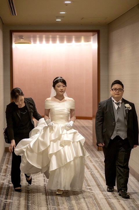 実はこの時すでに新郎新婦様は入場口の前でスタンバイ済み。
