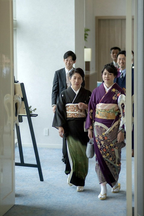 無事にご披露宴も結び、お二人様と親御様で皆様をお見送りです☺