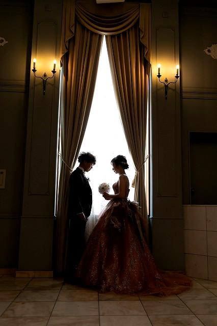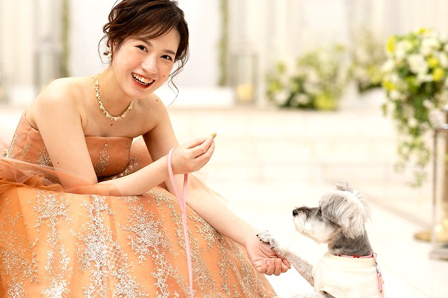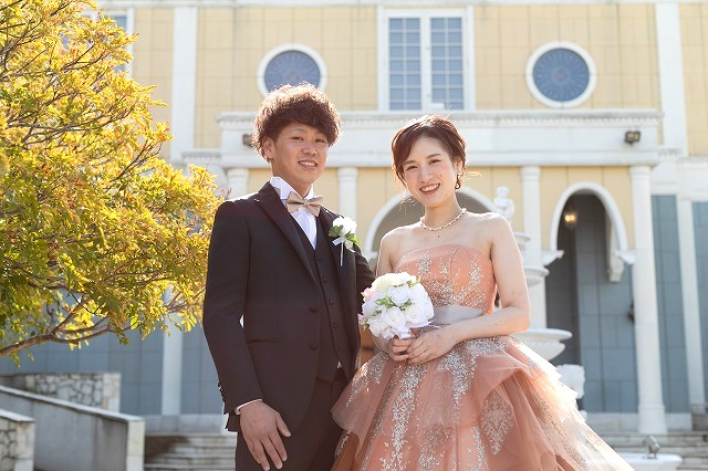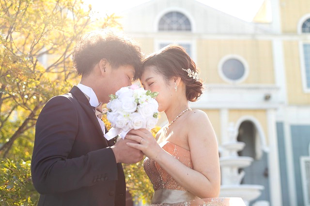 先日、新郎新婦様とお子様の3人でカラードレスと和装の2着前撮り撮影された方をご紹介します。