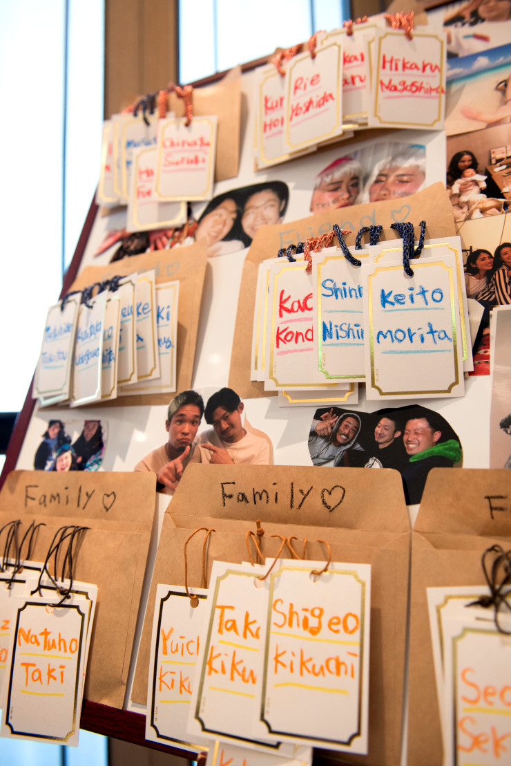 挙式後は披露宴♪ ウエルカムスペースには、手作りのエスコートカードを置いて、ゲストの皆様はこれから始まる披露宴にとてもわくわくしておりました♪