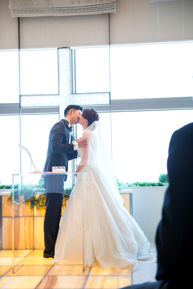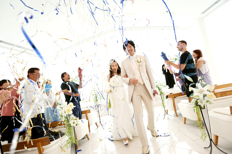 誓いのキスの瞬間に開くカーテン。チャペルから望むパノラマビューに、ゲストの皆様は歓声をあげていました☆