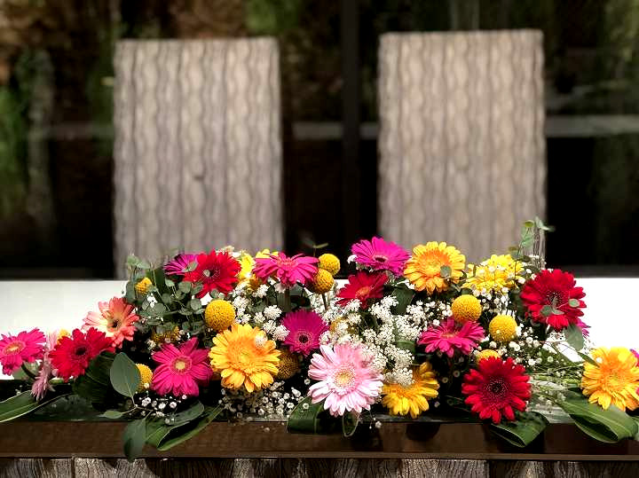 毎回テーマを決めてクロスのカラーリング、卓上装花などをお二人の為に