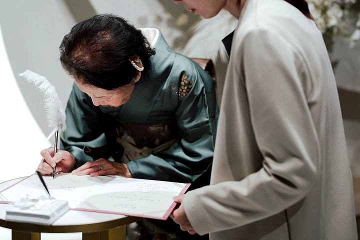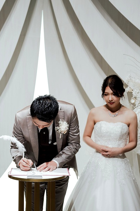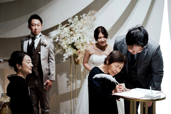 皆様の前で誓った誓約書にお二人に署名を行って頂きます。