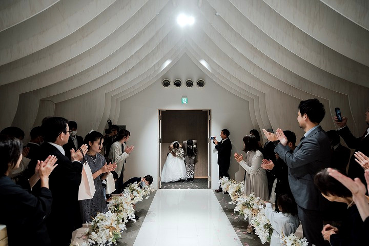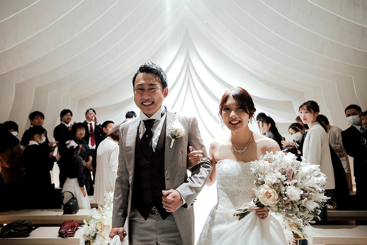 チャペル内を動き回っても、プロのカメラマンがおふたりとの素敵なショットを