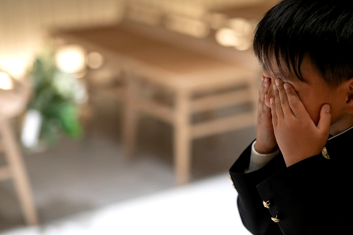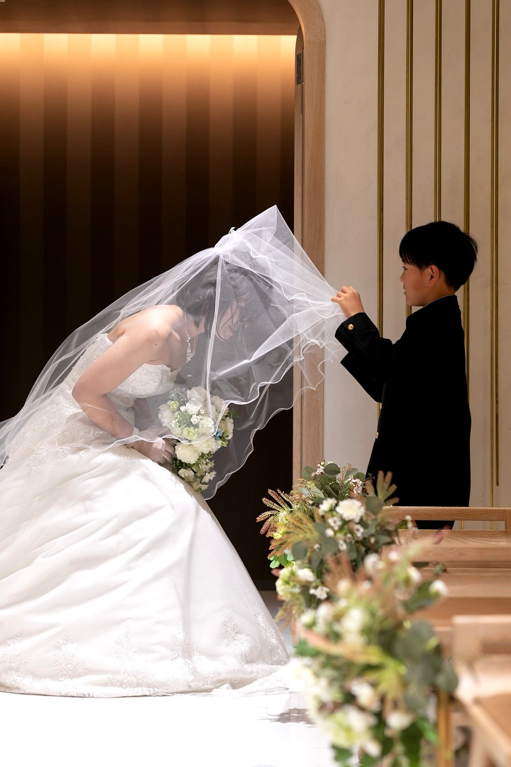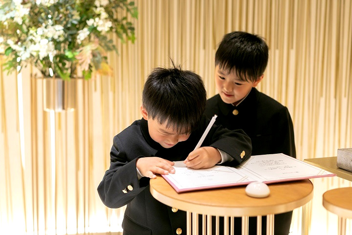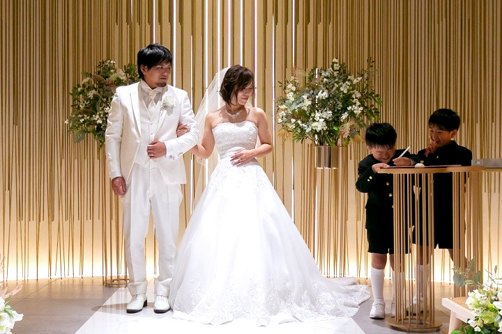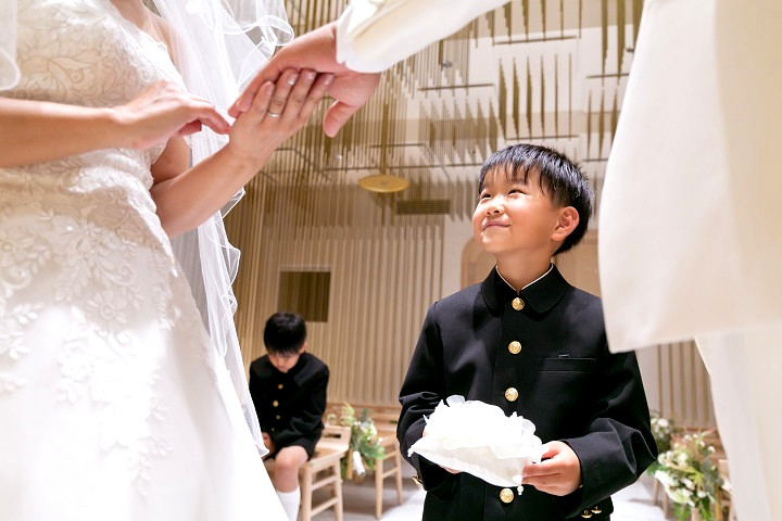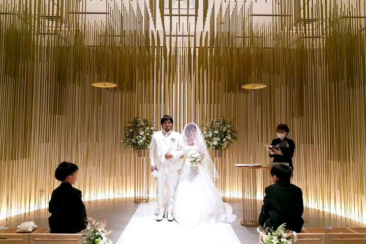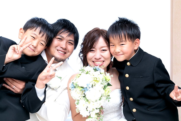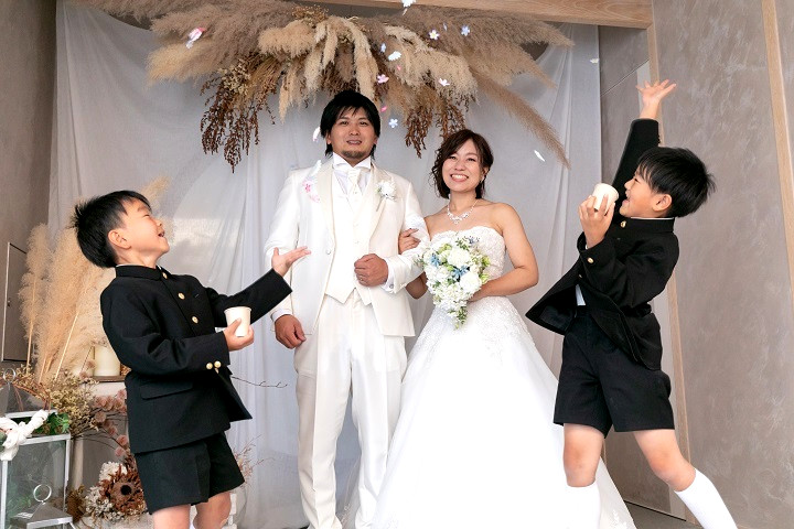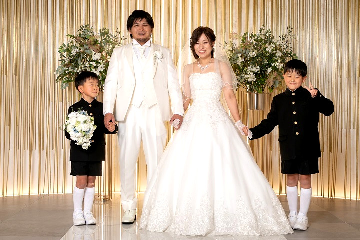 お父さんとお母さんとお子様ふたりの家族挙式。