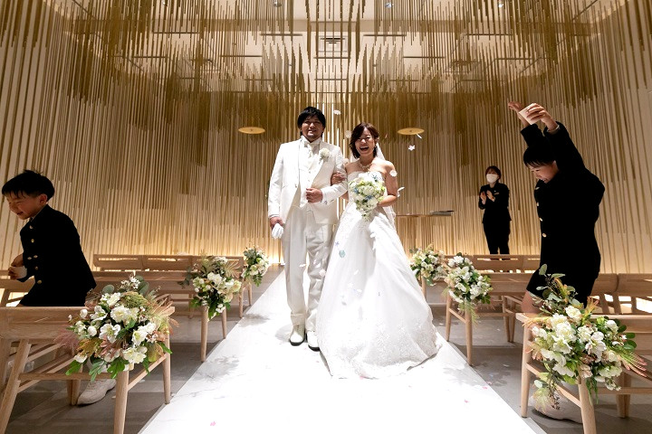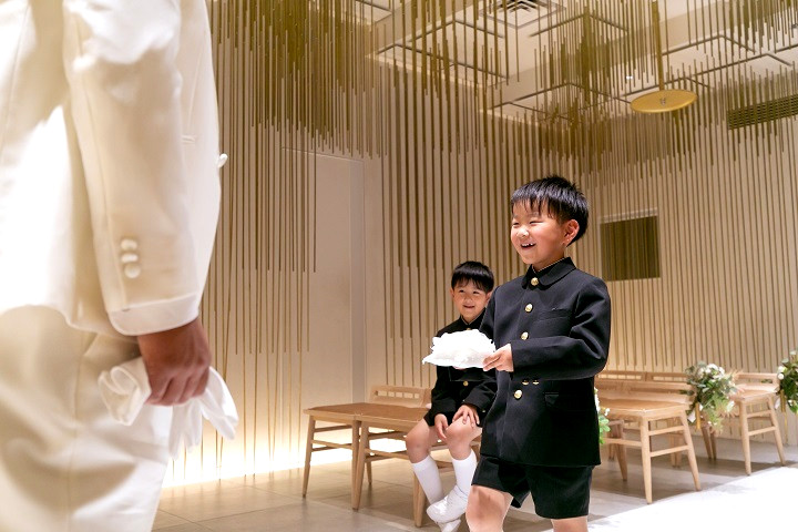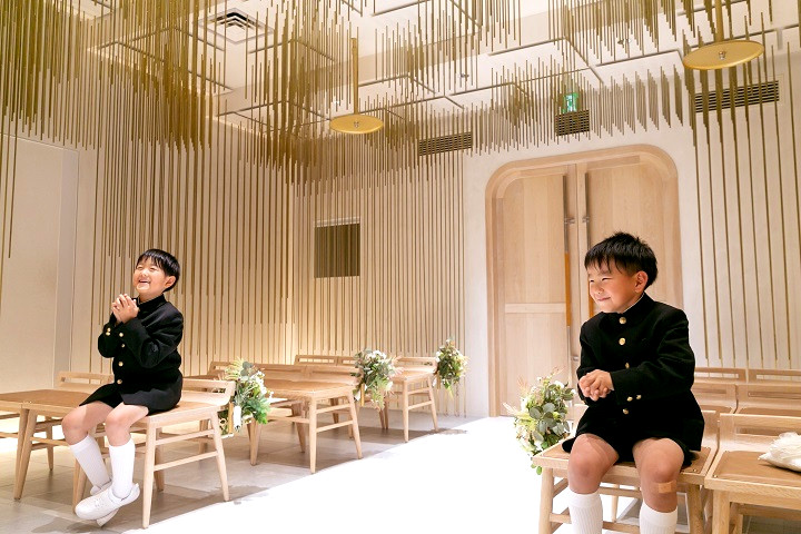 ゲストの椅子にはお子さんが2人。そう、今回ご紹介する結婚式と同じ4人式でした。