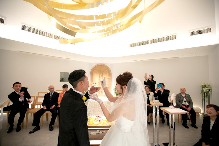セレモニーを大切な皆様にお近くで見届けて頂ける宴内人前式のスタイルです。