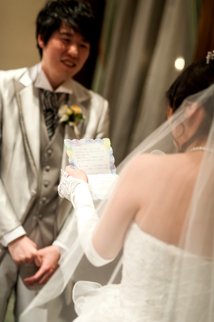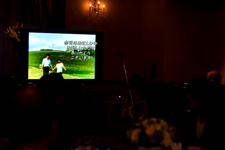 パーティー開宴後すぐに新婦様から新郎様へサプライズのお手紙のご披露と