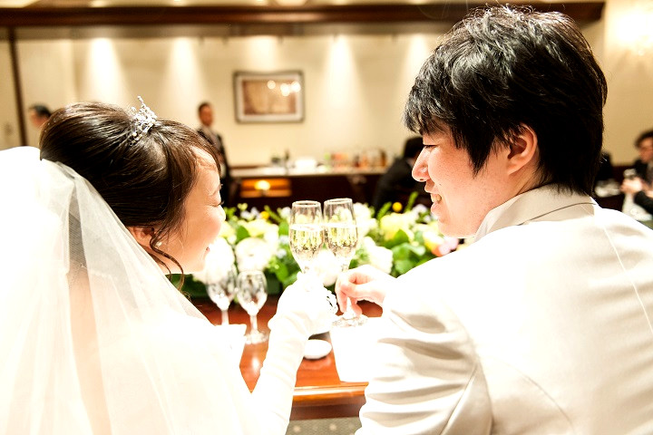 思わず涙ぐむ新婦様を優しくフォローする新郎様。