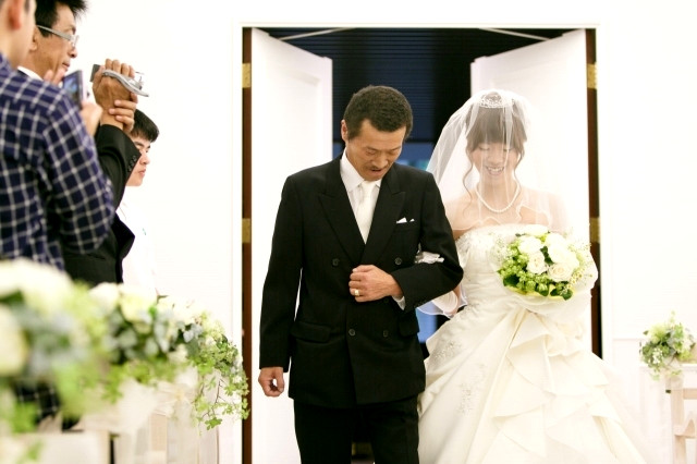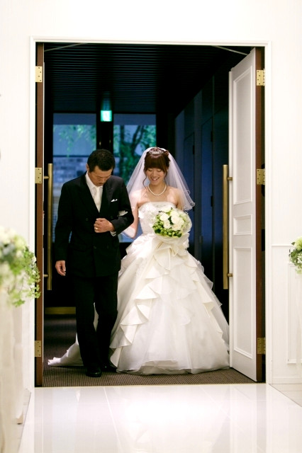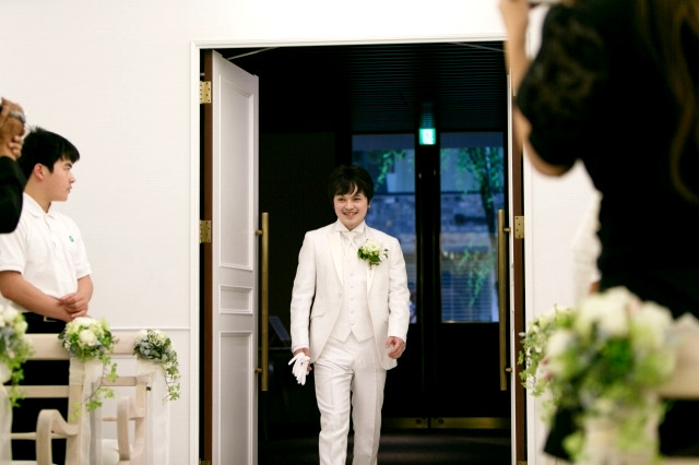 新郎様の入場後は、新婦様の入場をゲストと共に見守ります