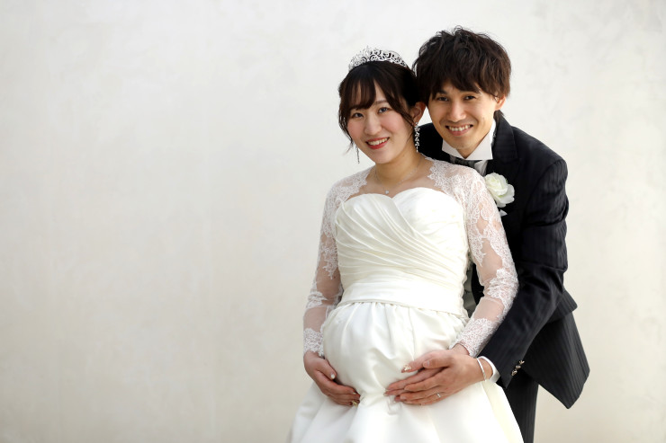 小柄で、笑顔がとってもかわいらしい新婦様、お腹には半年になる新しい命が宿っていました。