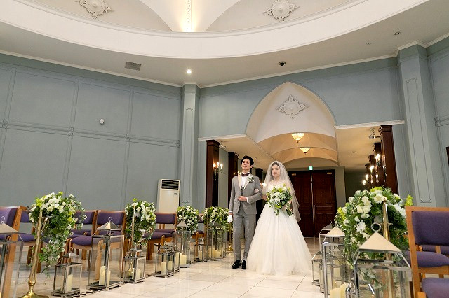 最後はお二人でバージンロードを歩みながら結婚式を終えます!
