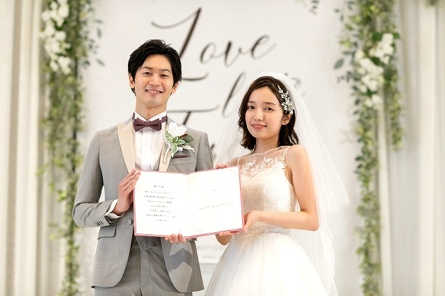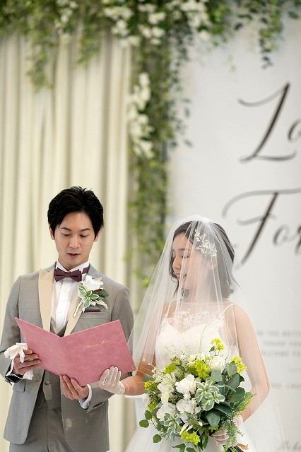 お二人で結婚式を誓っていただき、ベールアップから誓いのキスなど様々な演出をご用意しております♪