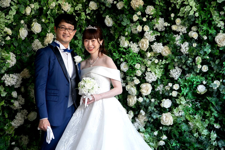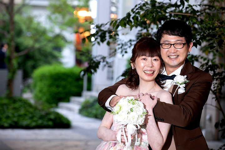 ワイルドだけど優しい新郎様と、いつも温かい笑顔の新婦様でございます。