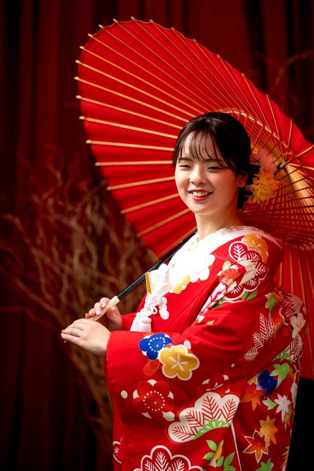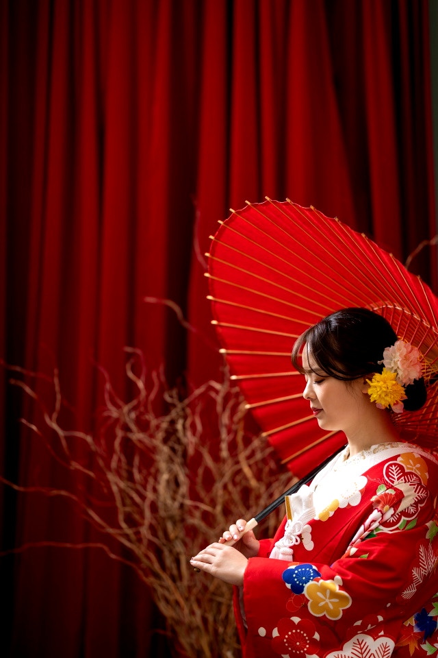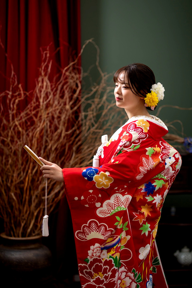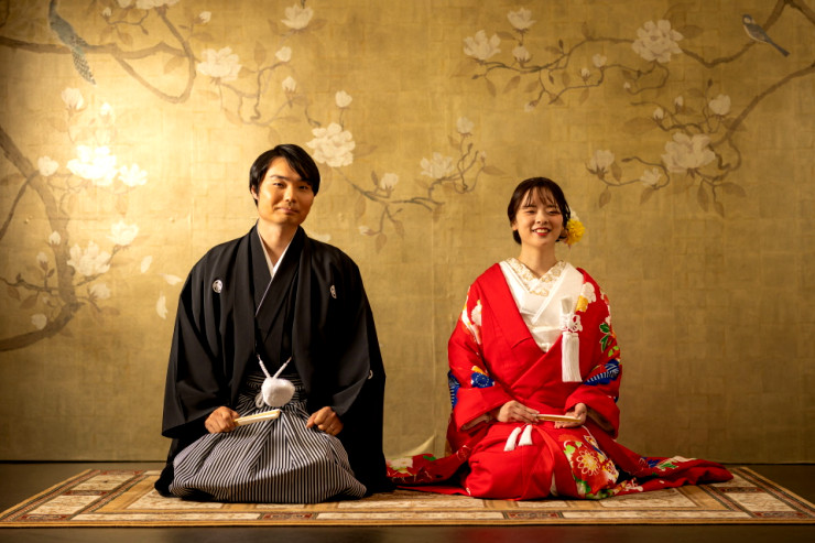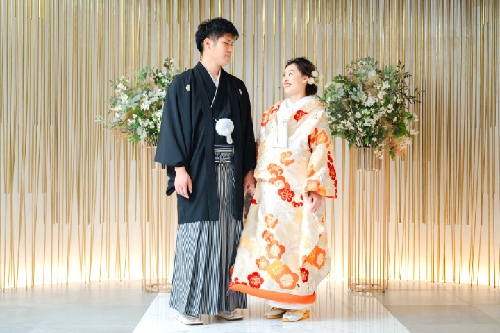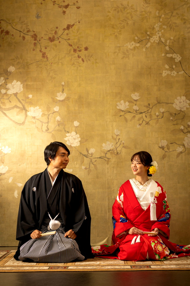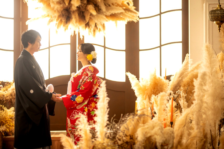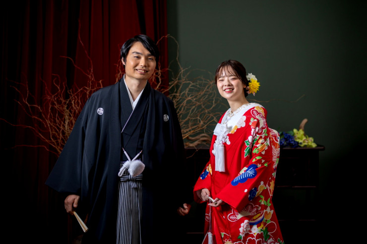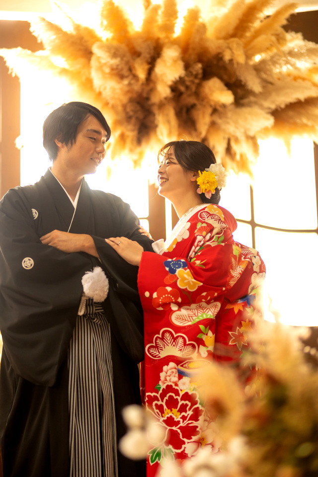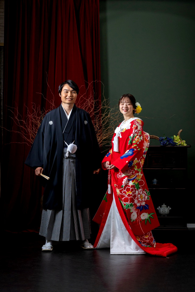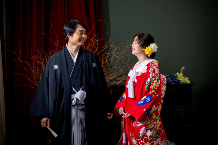紋付袴と色鮮やかな赤の色打掛を選ばれたお二人✨