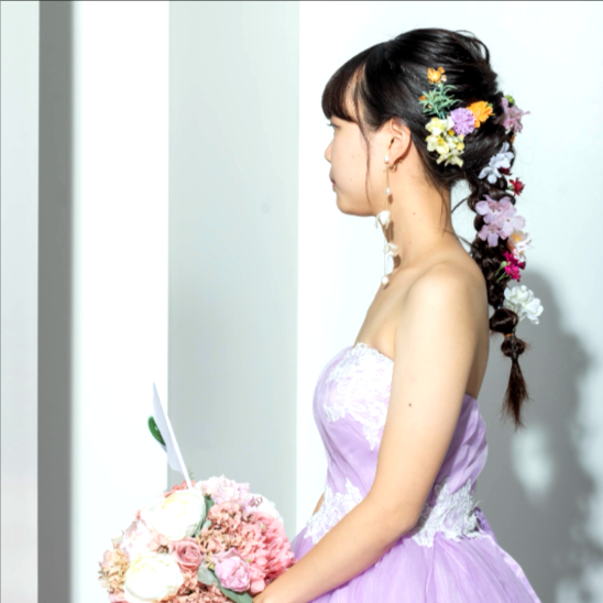 髪型はロングヘアを活かした編みおろしで、とにかくお花をいっぱいに🏵️