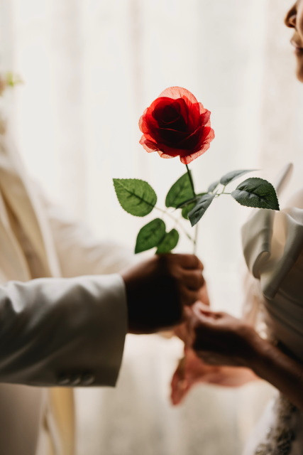 ご用意されたのは造花の一輪のバラ🌹