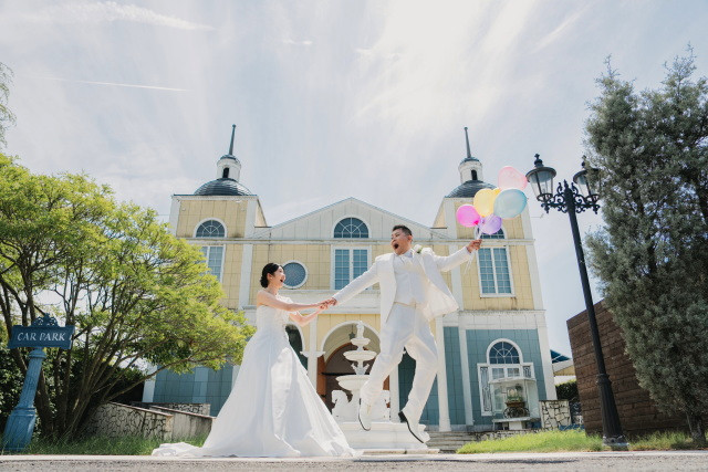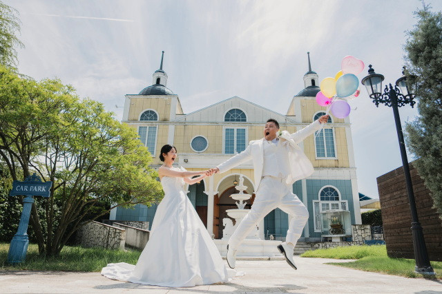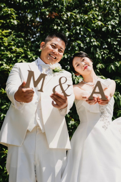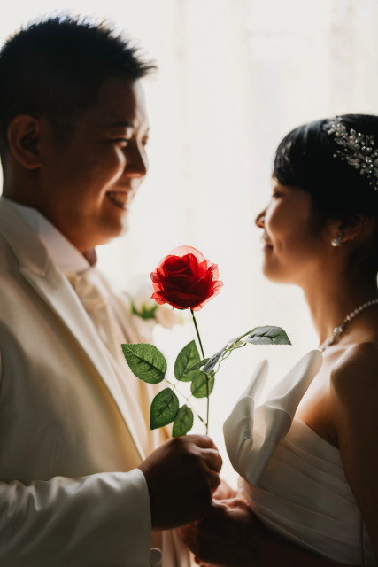 今回は洋装のフォトウェディングの際に小物を使用したお客様のご様子をお届けします♡