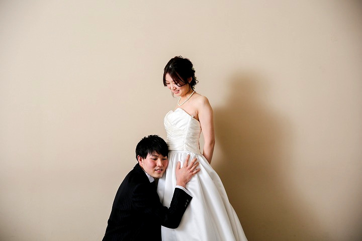 小さな結婚式ではマタニティの方への専用ドレスも取り扱っておりますので、安心してウェディングドレスをお召し頂けます^^