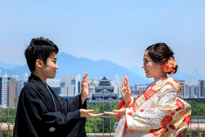 広島城をバックに、そして自然豊かな緑と一緒に撮影が出来ます!