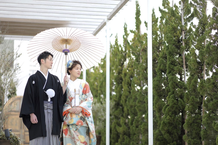 ドレスはチャペル、和装はスタジオ+屋上ロケーションなど。