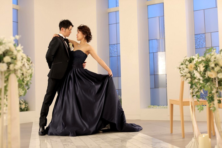 ご新婦様が一目惚れされました 【アネモネ】 シックなネイビーのドレスです