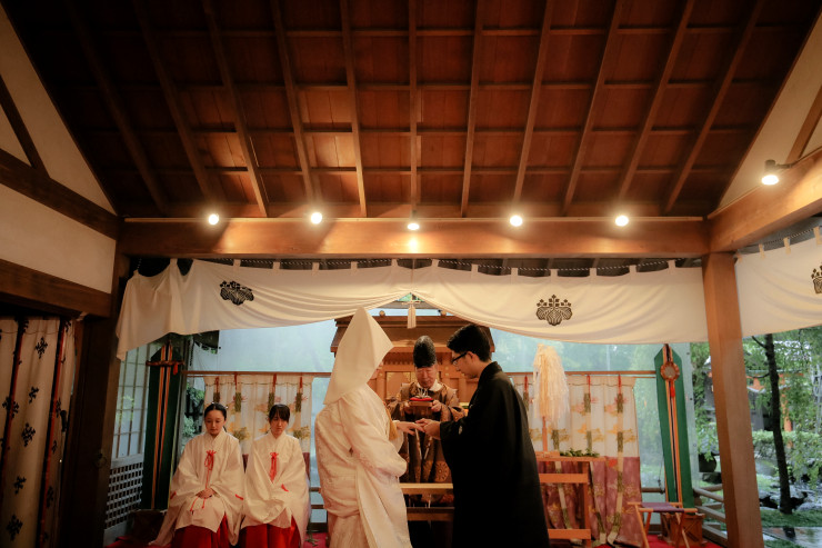 蔵舞台神殿で日本伝統の結婚式や