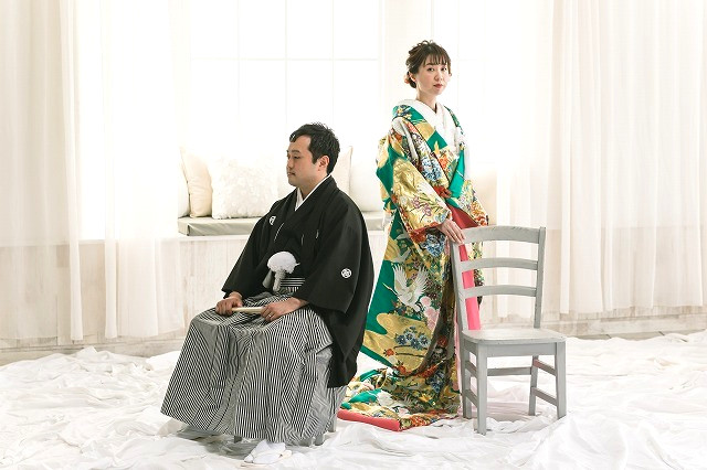 松山の和装スタジオは、背景のセットで雰囲気が変わります。