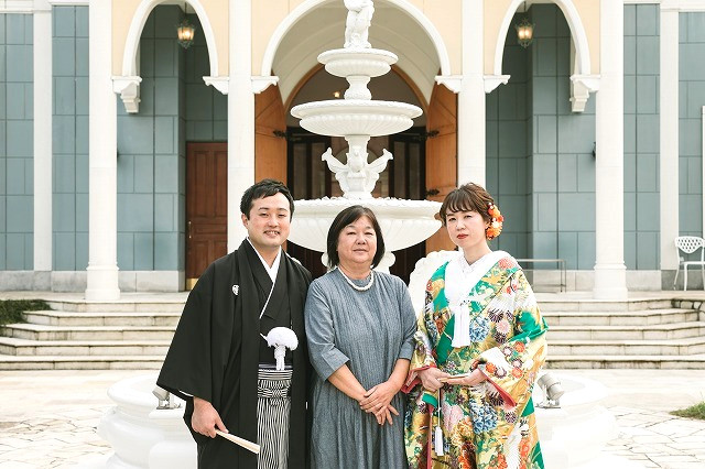 おふたりの間がおばあちゃんの席という演出で嬉しそう。