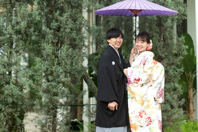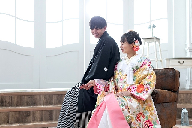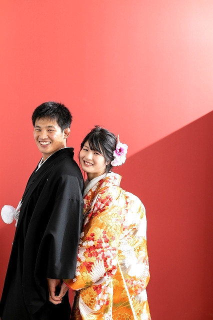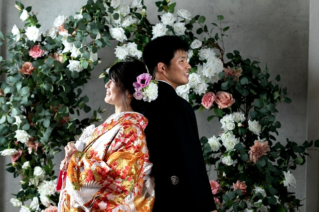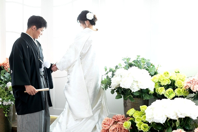同じ日にウエディングドレスと色打掛を撮影するプランが、人気です。