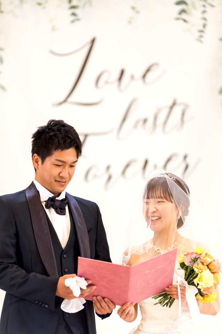 お二人おそろいになられましたら、皆様の前で誓いの言葉をお読みいただきます