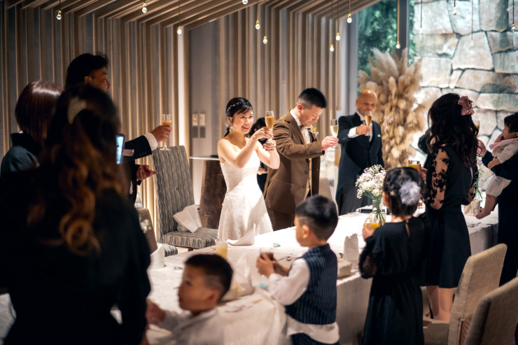バックショットも温かさとお二人の未来が感じられる構図での撮影。