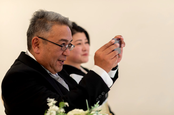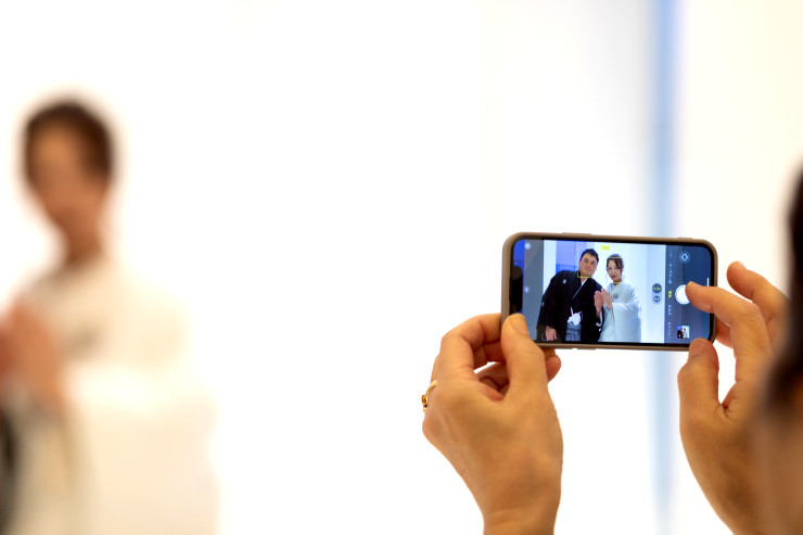 当館のチャペルは白を基調とした空間づくりですので、チャペル内での和装セレモニーも素敵なお写真が残せます