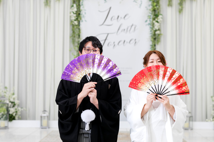 和装での撮影もあり、少し緊張もほぐれたタイミングでお二人の結婚を
