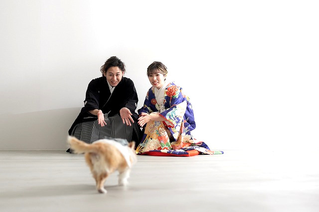 なんとワンちゃんとも一緒に撮影できるスタジオで