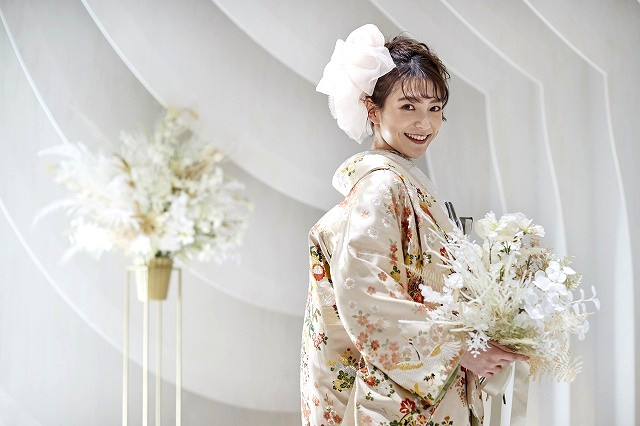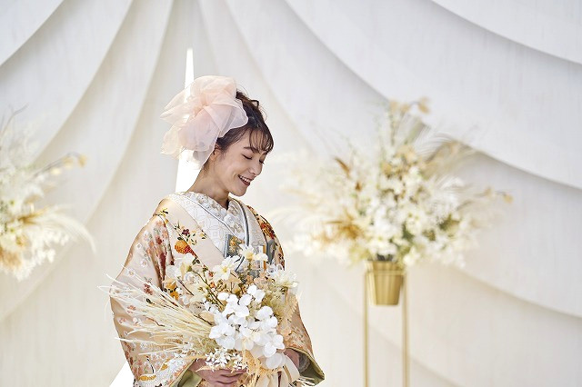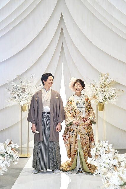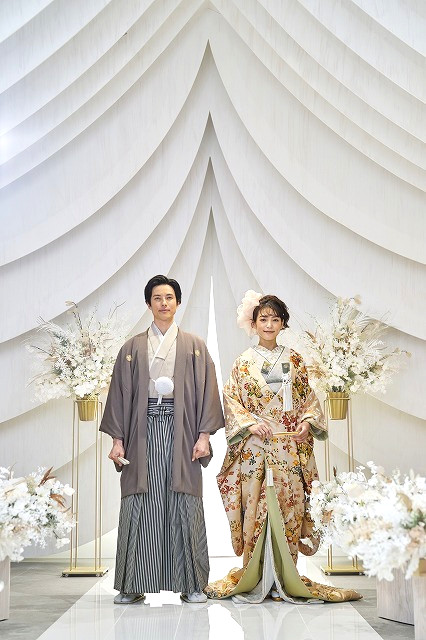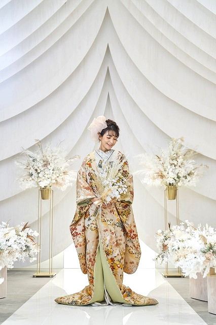 福岡店では、和装も似合うチャペルデザインになっております!