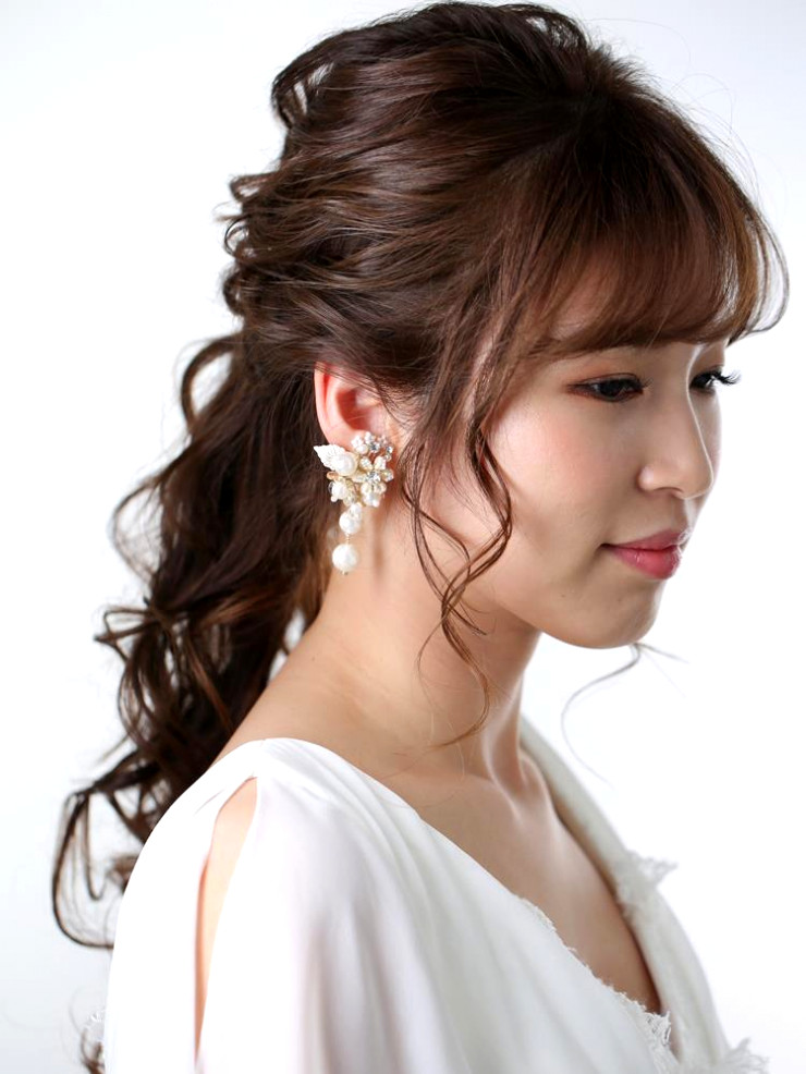 ヘアスタイルもシニヨンやローポニーテール、ダウンスタイルなど