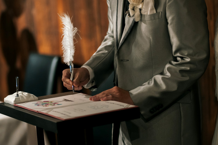ここでお二人には先程の誓約書にご署名を行っていただきます。