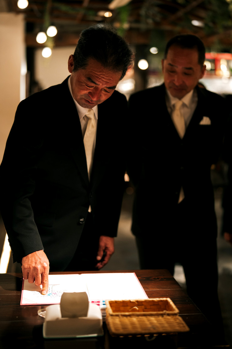 お写真撮影後は引出物をお渡しされながら皆様をお見送りです👋