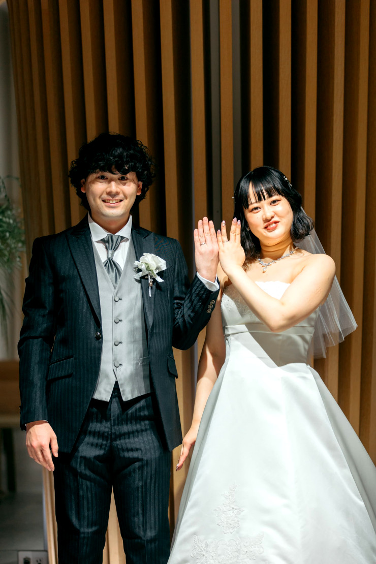 指輪の交換や誓いのキス、指輪のご披露もしっかりお写真に残していただけます
