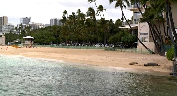 ハワイ州当局としては、アザラシの保護の為に人々が近づかないようにフェンスや看板の設置がされてます。