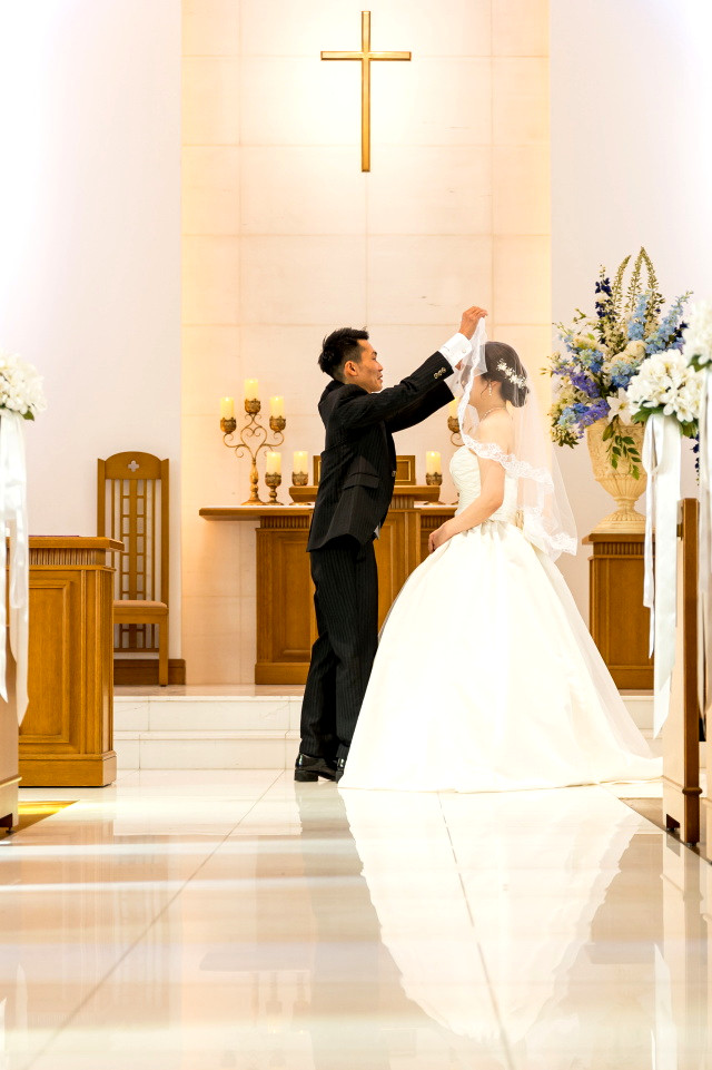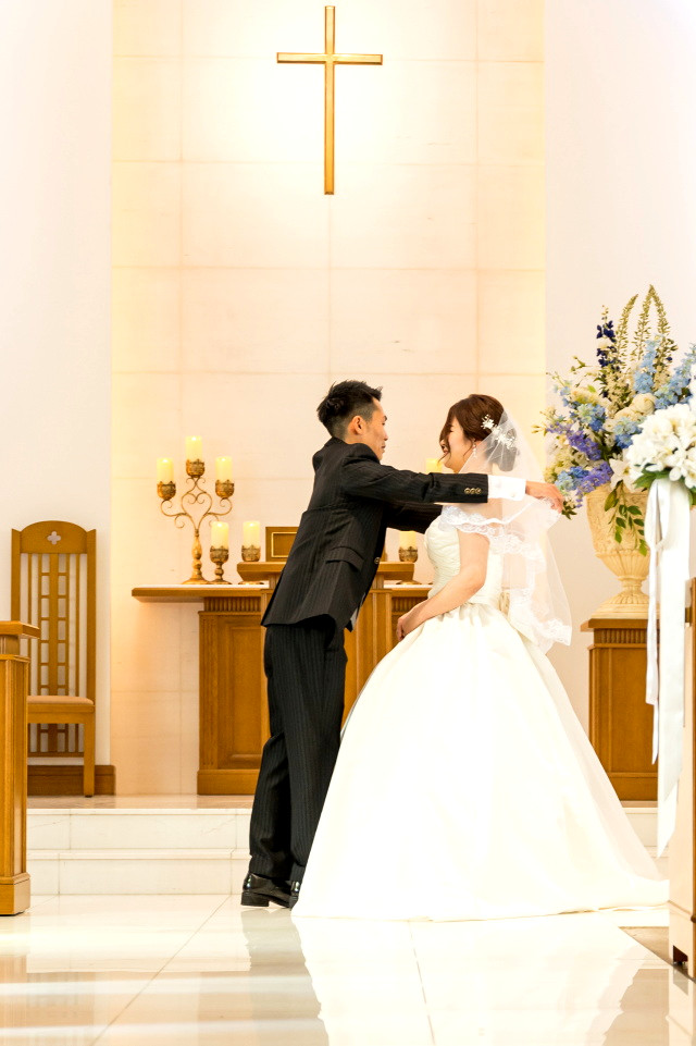 指輪交換の後はベールアップです♡