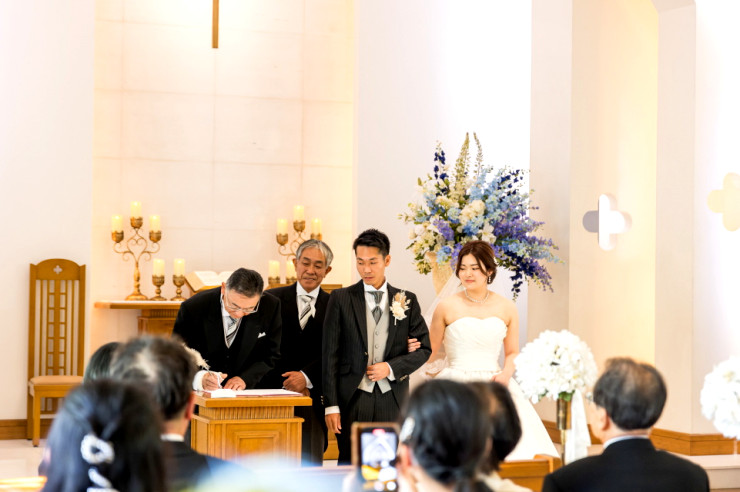 お二人には結婚証明書にサインをいただきます🖊