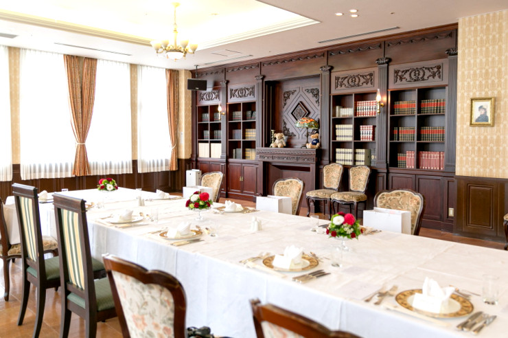 英国ホテルへと形を変えた今でもアンティーク家具やサービスマンが