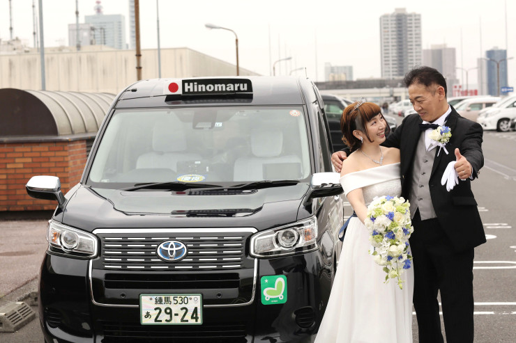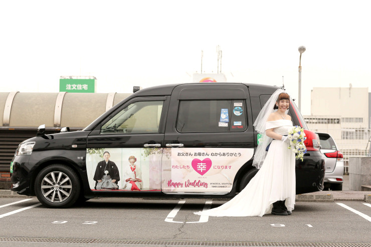 ③ご自身のタクシーと一緒にドレスで写真を撮りたい