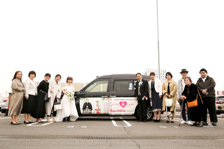 また嬉しいことにお二人の和装のお写真を車体にラッピングまでしてくれたんです!!!