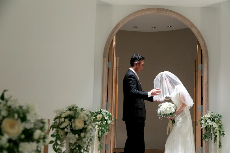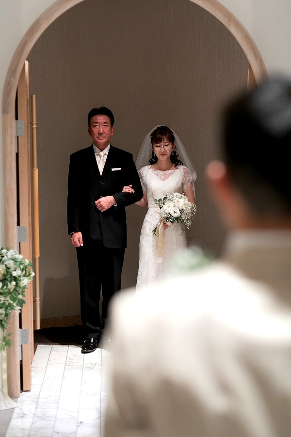ご入場の際には新婦お父様とバージロードをお歩きになり、