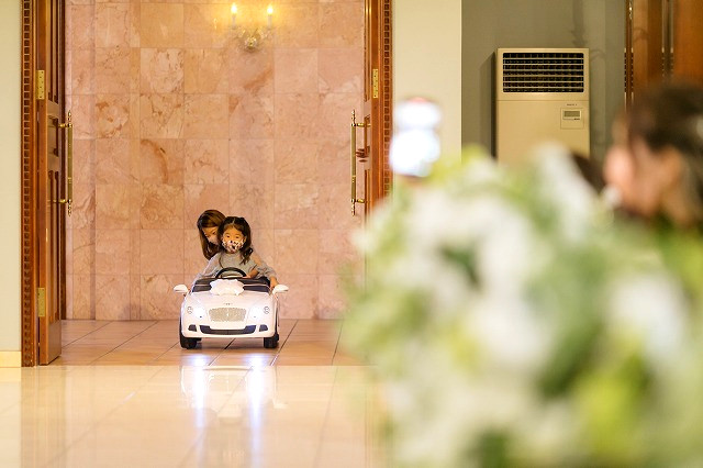 小さなゲストにお願いして、指輪を届けてもらう演出です。
